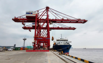 12月14日,中國船舶集團旗下中國動力子公司武漢船機海西重機公司為寧波港物資有限公司打造的2臺65t-45m岸橋在寧波舟山港北侖山多用途碼頭順利交機。